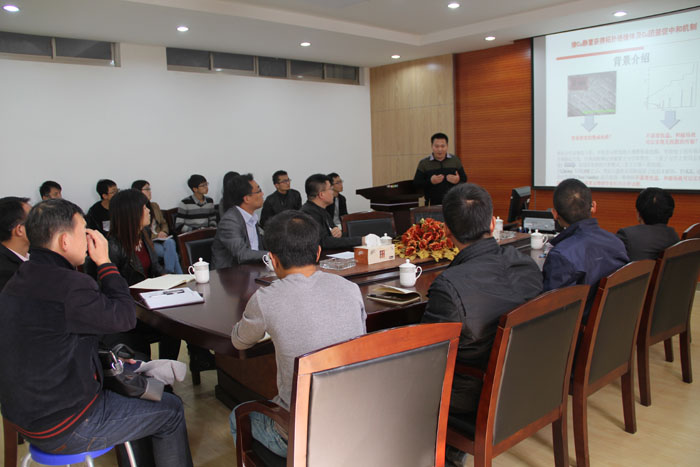 会上,陈太师博士的报告内容主要涉及Cu团簇连同其中和机制在拓扑绝缘体中的时效优化作用及Pd原子团簇修饰石墨烯及其调控量子相干输运的实验研究。此次报告内容丰富,具有很好的科普性与研究性。参加此次活动的师生针对报告内容进行了热烈的讨论,并就后续研究工作进行了探讨,交流活动获得圆满的成功。