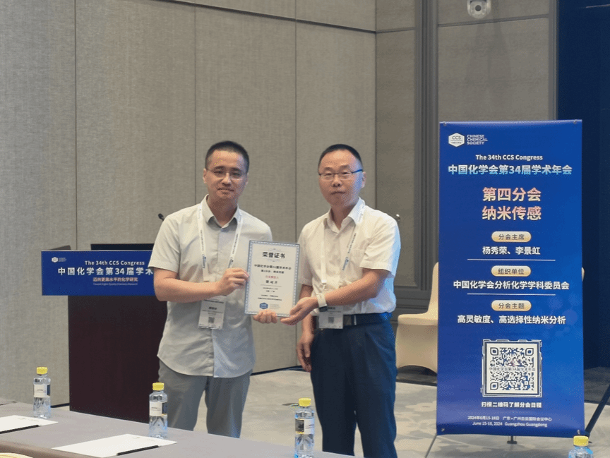 2024年6月15日至18日,中国化学会第34届学术年会在广州召开,我室“智能环保MOFs新材料研究所”解明华和杨秀丽教授参加会议,并分别在纳米传感分会和功能晶态材料分会作题为《基于MOFs双通道信号分子识别》及《手性MOFs传感功能调控》的学术报告。